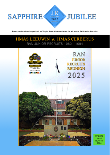 After the disappointment of the Covid cancellation situation for the 2020 JR Reunion, to date in 2024 has been busy for the new sub-committee crew to ‘reunite the fire’. Celebrating our 65 years since the second generation of Tingira Boys entered the RAN via those Leeuwin Gates at East Fremantle, Western Australia, is a great milestone for all of us.